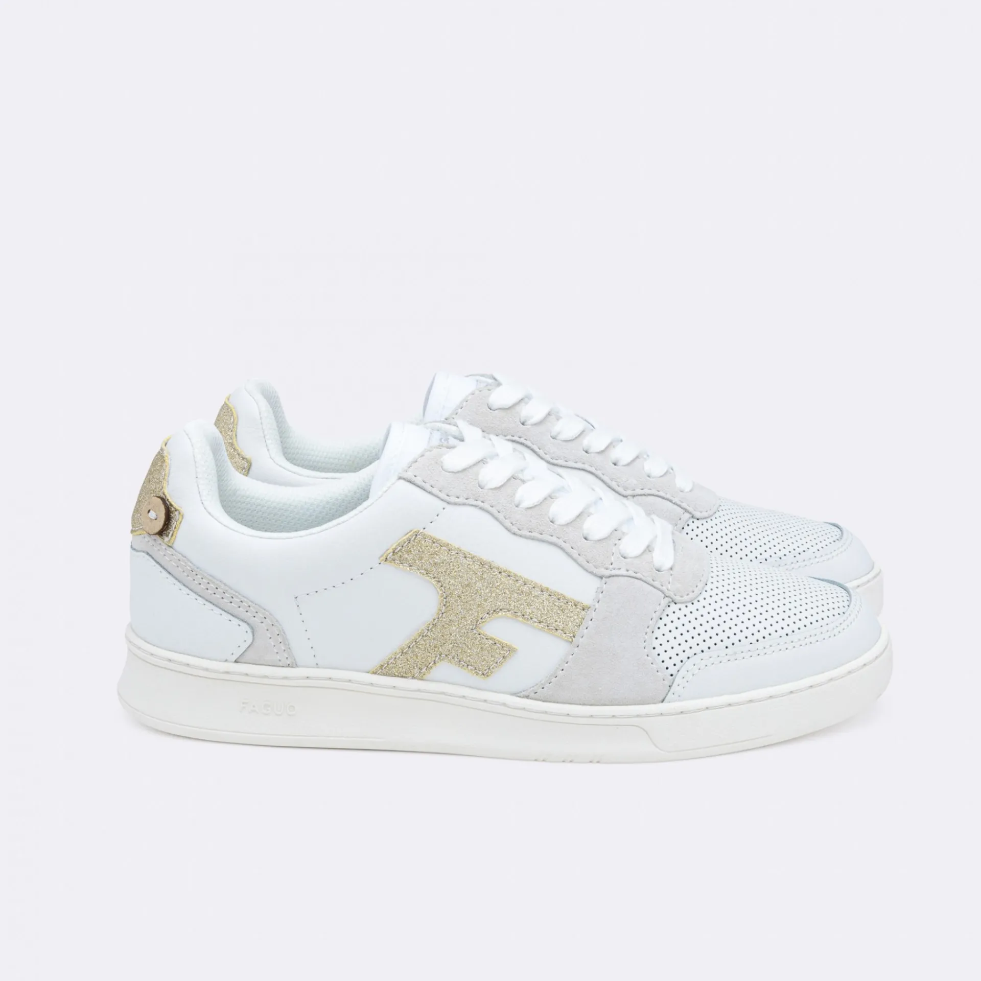 La Hazel Blanche & Doree Est Une Basket Basse Inspiree Des Baskets Des Annees 80. Sa Semelle Cousue A La Tige A Ete Pensee Dans Notre Studio Pour Une Duree De Vie Optimale. Reconnaissable Grace A Son Logo F Sur Le Cote, Elle Est L’Incontournable Faguo A Porter Pour Toutes Les Occasions.