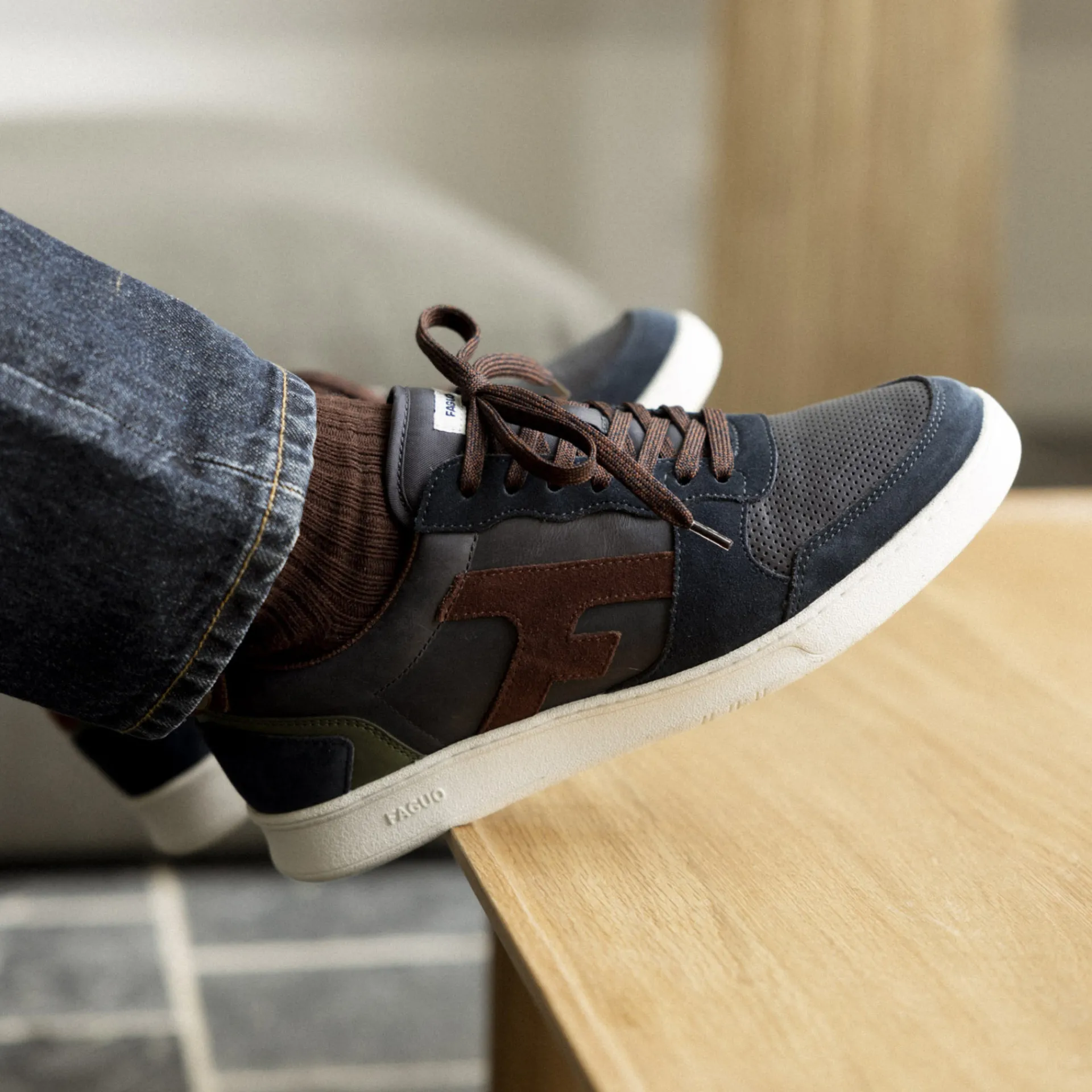 Grandes Pointures*FAGUO Baskets Marine & Marron
